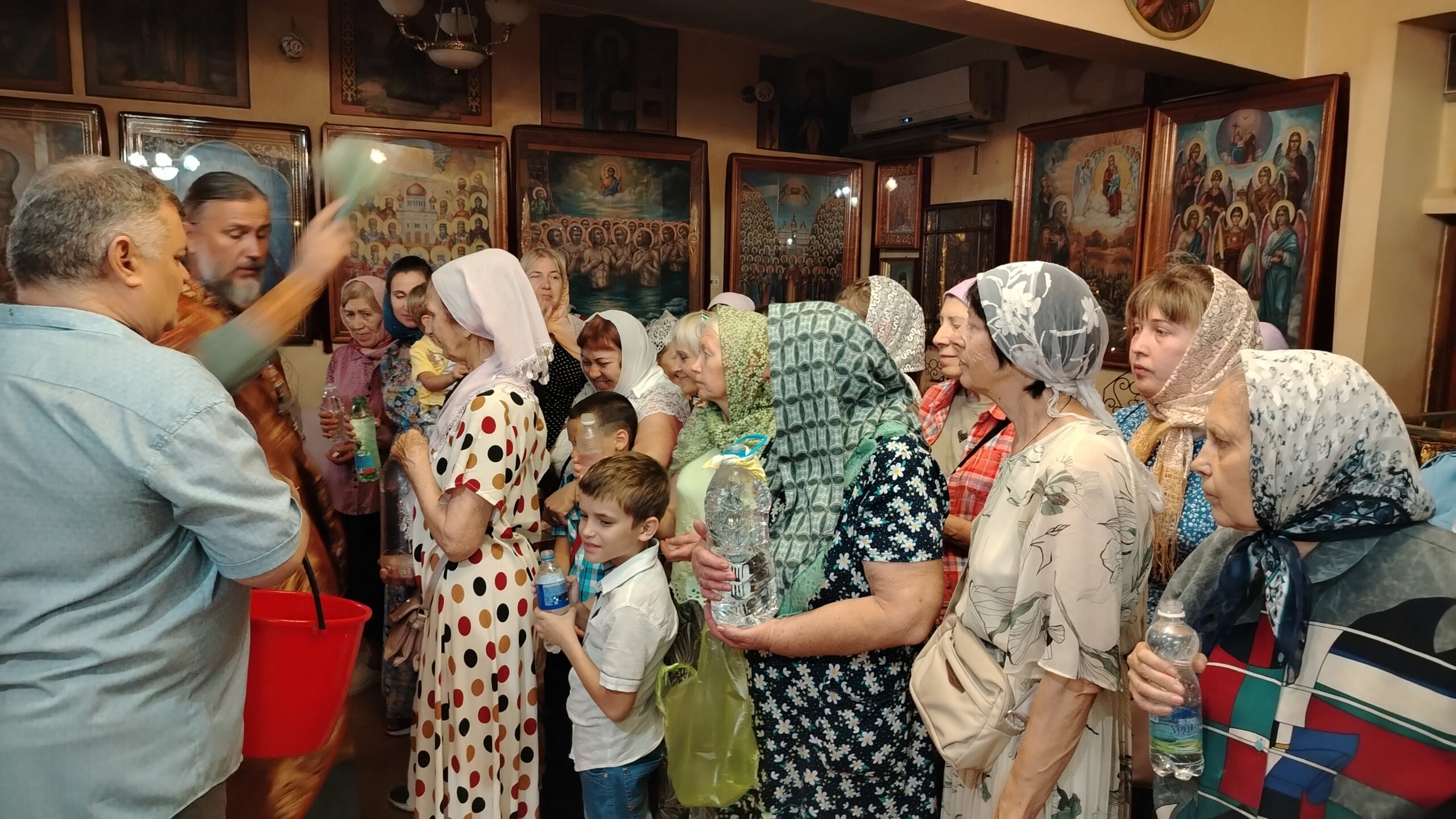 По завершении  литургии был отслужен водосвятный молебен с чтением акафиста, а затем гостей праздника и прихожан ждала  трапеза .